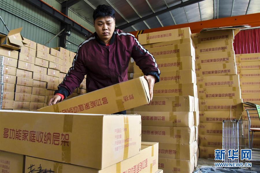 10月9日,在文安县鸿鹏五金厂就业的贫困人员樊广会在装卸五金产品。樊广会父母年老多病,家庭没有经济来源,在扶贫项目帮助下他在企业找到稳定工作。 新华社记者李晓果摄