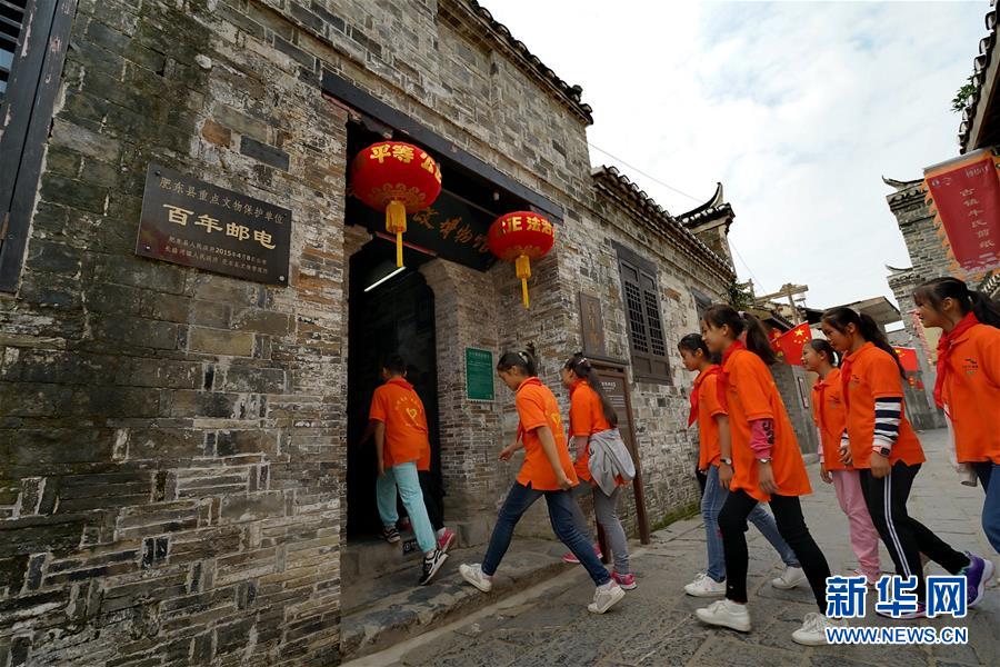 10月9日,学生走进肥东县“百年邮电”陈列馆参观。新华社发(许庆勇 摄)