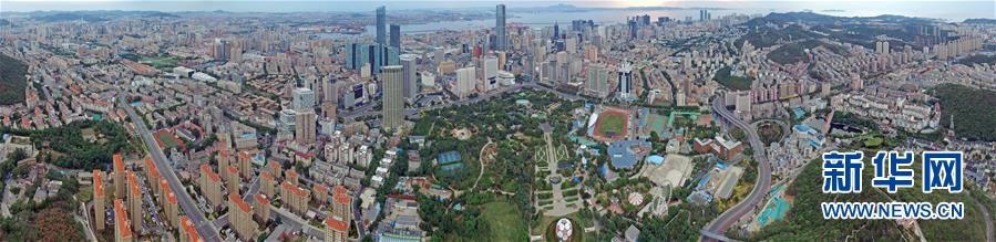 无人机拍摄的大连市区景观(2017年6月12日摄,拼接照片)。新华社记者 杨青 摄