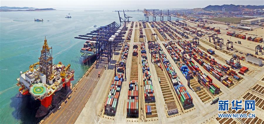 这是2017年6月13日无人机拍摄的大连港大窑湾集装箱码头。新华社记者 杨青 摄