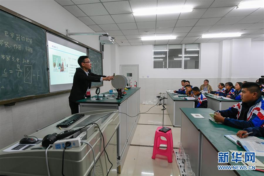 10月8日,来自西藏昌都市第三高级中学的物理老师淳敬松在竞赛现场授课。新华社记者 刘东君 摄