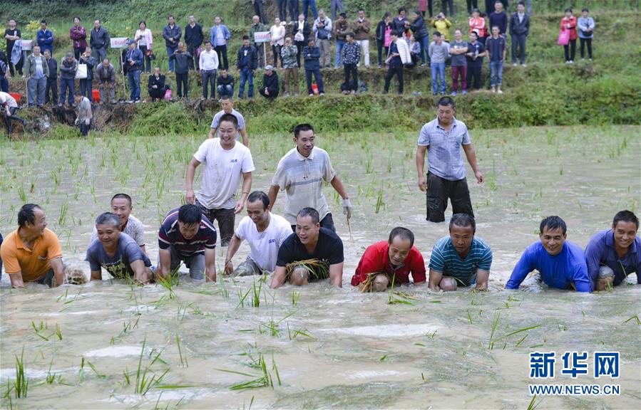 10月10日,在广西龙胜各族自治县瓢里镇,人们在参加“浑水摸鱼”活动。 当日,广西龙胜各族自治县瓢里镇举办“鱼宴节”。人们开展原始捕鱼手艺表演、万尾鱼苗放流、千人浑水摸鱼、鱼生制作技艺竞技、传统百家宴等活动欢庆丰收。活动吸引了众多游客前来参与体验。 新华社发(潘志祥 摄)
