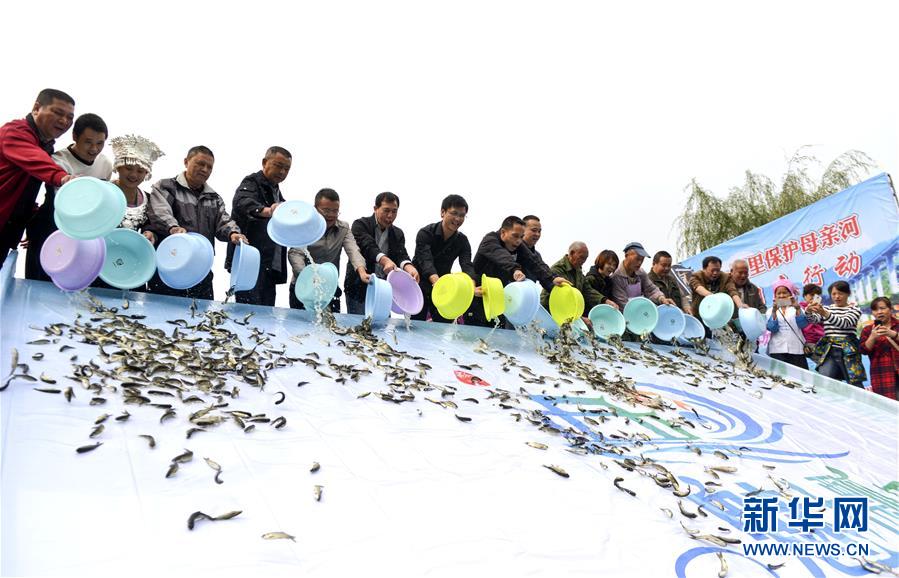 10月10日,在广西龙胜各族自治县瓢里镇,人们在参加鱼苗放流活动。 当日,广西龙胜各族自治县瓢里镇举办“鱼宴节”。人们开展原始捕鱼手艺表演、万尾鱼苗放流、千人浑水摸鱼、鱼生制作技艺竞技、传统百家宴等活动欢庆丰收。活动吸引了众多游客前来参与体验。 新华社发(潘志祥 摄)