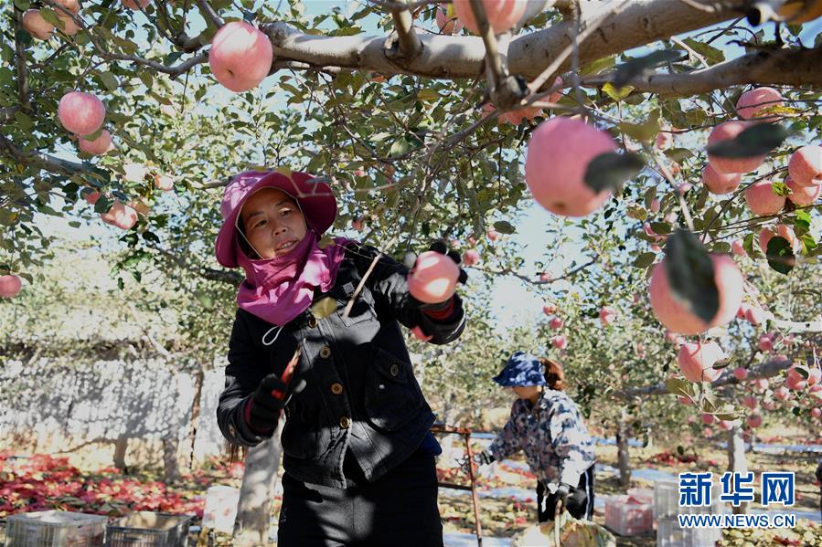 10月10日,山西省临汾市吉县吉昌镇山阳村的果农在果园里采摘苹果。 近年来,山西省临汾市吉县推动苹果产业提质升级。目前全县苹果种植面积达28万亩,果农的果品收入占纯收入的80%以上,苹果产业成为当地农民的致富产业。 新华社记者 杨晨光 摄