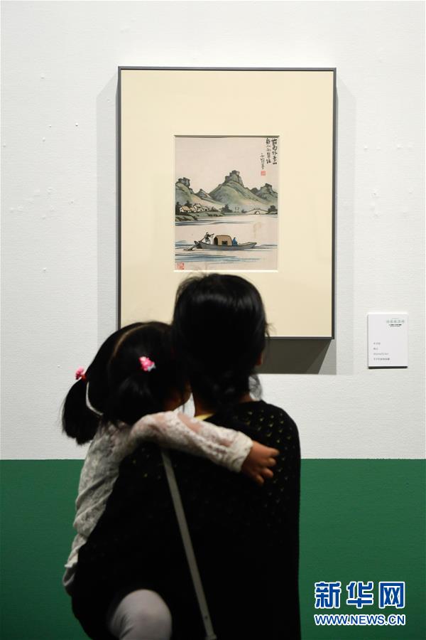 10月10日,观众在浙江美术馆观看丰子恺的漫画作品《青山》。 当日,“此境风月好——丰子恺诞辰120周年回顾展”在位于杭州的浙江美术馆开幕。本次回顾展展出丰子恺作品126件、师友作品72件和珍贵文献145件。展览将持续到10月27日。 新华社记者黄宗治摄