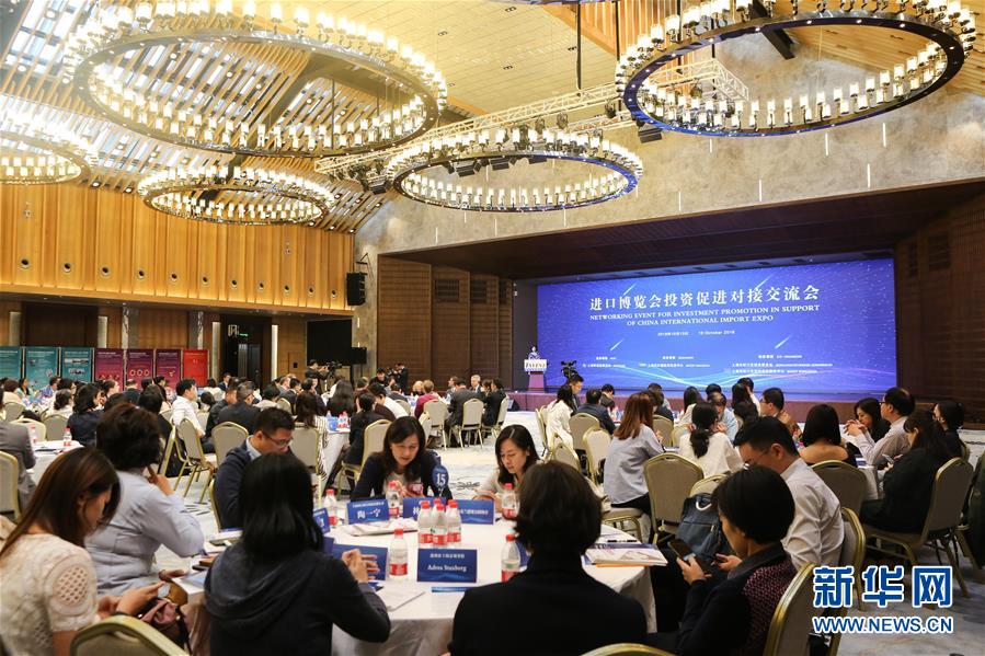 10月10日,进口博览会投资促进对接交流会在上海松江广富林国际文化交流中心举行。 新华社记者李京摄