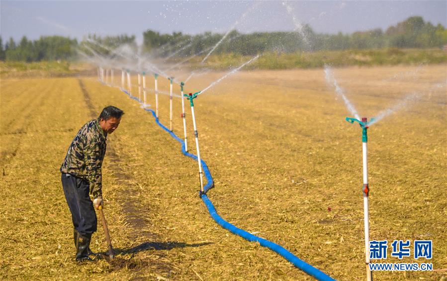 10月10日,在河北省深州市魏家桥镇马家湾村,众联农机合作社社员在托管的土地上劳作。 新华社记者 李晓果 摄