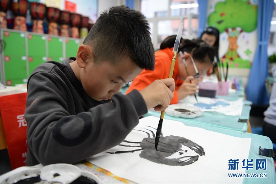 10月10日,哈尔滨市铁岭小学学生在校内课后服务课堂上练习绘画。 新华社记者 王凯 摄