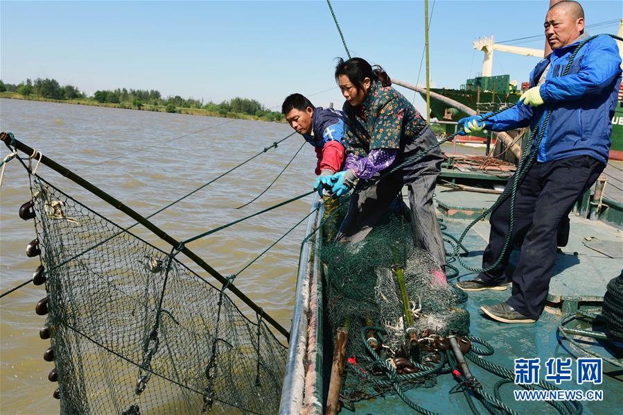 10月10日,江苏镇江渔民在长江中收网捕蟹。 新华社发(石玉成 摄)