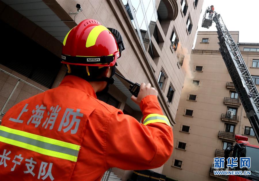 进博会疏导区举行消防救援综合演练