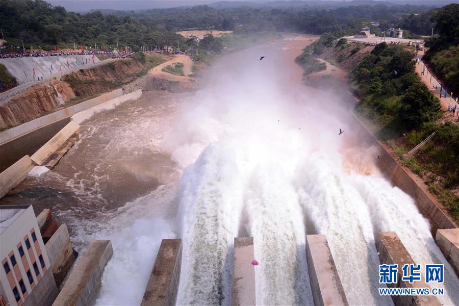 2018年1月8日拍摄的位于斯里兰卡中部的莫勒格哈坎达水库。由中国电建承建的莫勒格哈坎达水库项目是斯里兰卡最大规模的水利枢纽工程,于2012年7月开始建设,2017年7月全部完工。新华社发(普拉迪普·帕蒂拉纳摄)
