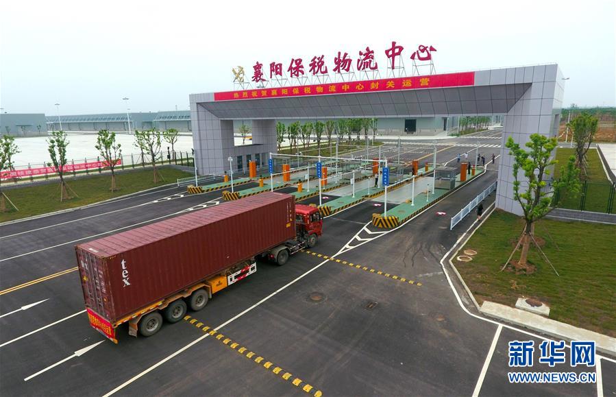 2017年6月13日,一辆满载进口货物的集装箱卡车驶入湖北省襄阳保税物流中心。新华社发(谢勇 摄)