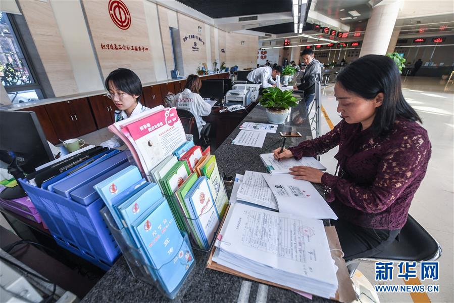10月11日,织里镇轧村的工作人员潘新娥(右)在镇行政服务中心为村民代办生育登记事项,这是“村社代办”的服务项目之一。 近年来,浙江省湖州市织里镇积极出台多项新举措助力“最多跑一次”改革,先后梳理出“最多跑一次”清单事项325项,通过“网上办”“自助办”“区镇同权”“快递送达”“村社代办”等新方式打破了办事空间上的限制,提升了工作效率,完善了乡镇公共服务体系。 新华社记者 徐昱 摄