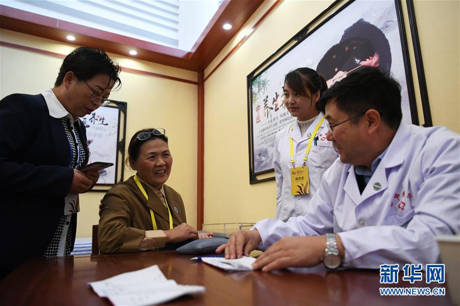 10月11日,参会嘉宾在活动现场向中医咨询。 当日,以“传承创新,合作共赢”为主题的2018中国(甘肃)中医药产业博览会在甘肃省陇西县开幕。本届博览会为期4天,将举办高峰论坛、中药材交易采购会、产业招商大会、中医药产品及服务体验等活动。 新华社记者 陈斌 摄