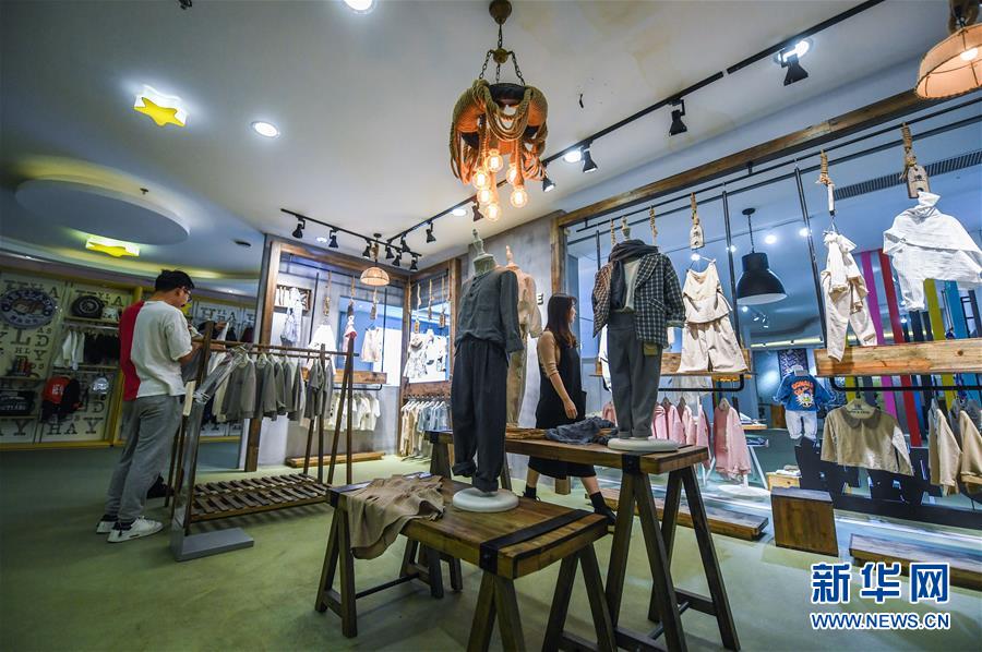 10月11日,设计师在织里童装设计中心的样品展示区内查看不同款式的童装。 近年来,作为童装之都的浙江省湖州市织里镇积极打造本土童装设计“人才高地”,成立织里童装设计中心,配备先进的服装设计、制作设备,完善相关配套服务,吸引国内优秀童装设计团队入驻。目前,中心入驻优秀设计团队20家,常驻设计师240人左右,积极为织里童装企业提供款式、图案、面料、工艺等各项产品设计研发服务,以及设计培训、流行资讯、展览展示等延伸性服务。2017年,该中心设计开发童装款式1.5万件(套),投入生产款式1.2万件(套),入驻设计工作室实现产值2000余万元。 新华社记者 徐昱 摄