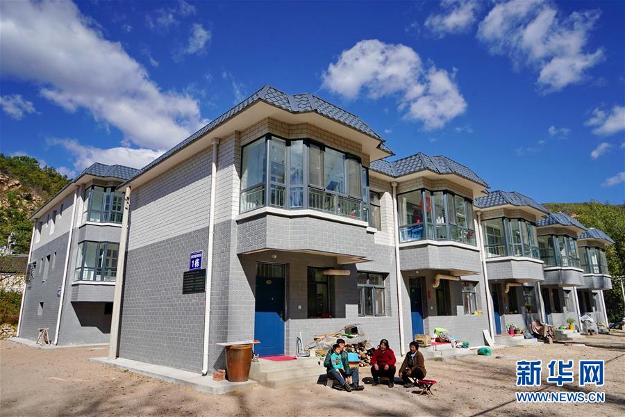 10月11日,青龙满族自治县青龙镇龙潭村村民在新居前聊天。新华社记者 杨世尧 摄