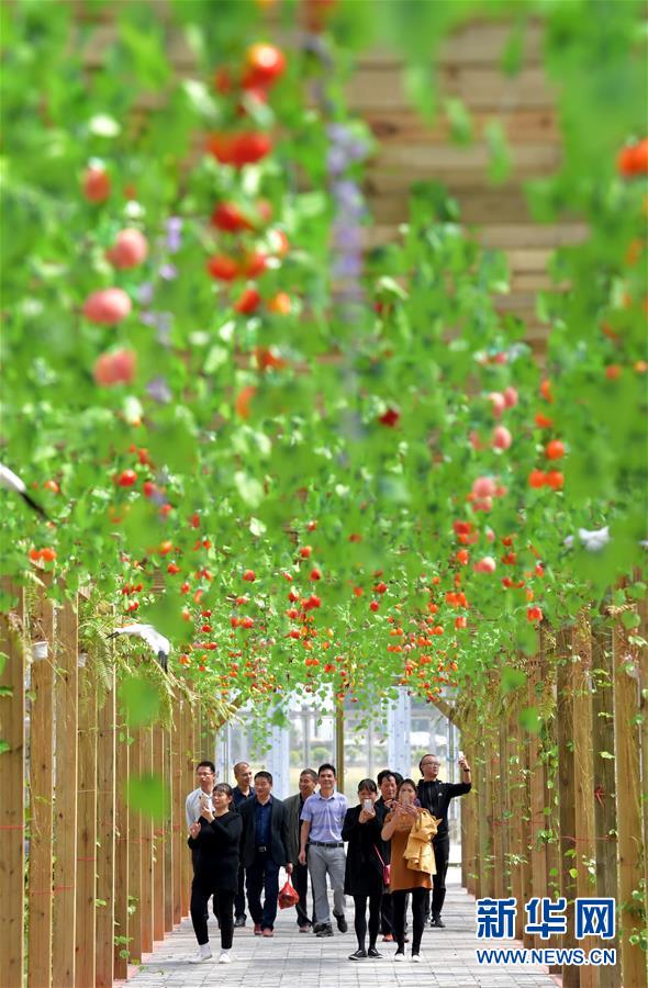 10月11日,游客在江西省萍乡市湘东区东桥镇农旅扶贫产业园参观。 近年来,江西省萍乡市湘东区充分发挥现代设施农业的科技优势,打造以创意农业、农业设计、农事体验和观光旅游为主要内容的田园综合体,推动农业、旅游业融合发展,助力乡村振兴。 新华社记者 彭昭之 摄