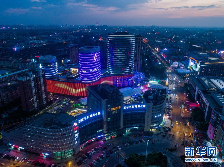 夜幕下的濮院镇(9月15日无人机拍摄)。 今年9月以来,作为全国最大的毛衫集散中心的浙江省桐乡市濮院镇羊毛衫市场进入销售旺季,平均每日物流量近2000吨,比2017年同期略有增长,市场产销两旺。近年来,濮院羊毛衫市场转型升级,注重研发和销售,以“专业化、时尚化、国际化”为路径,不断整合、提升时尚产业,成为推动濮院专业市场发展的新引擎。 浙江省桐乡市濮院镇是全国最大的羊毛衫集散中心和全国毛针织服装生产基地,约有上万户生产加工企业,市场现有19个交易区,1万余间商铺,毛衫交易量占全国总量的60%以上。2016年濮院成为首批中国特色小镇,同时也是国家级的“毛衫时尚小镇”。 新华社记者 徐昱 摄