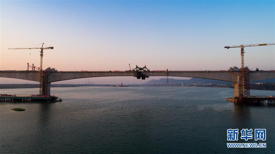 10月12日,崔家营汉江特大桥顺利合龙(无人机拍摄)。 当日,位于湖北襄阳的汉(武汉)十(十堰)高铁崔家营汉江特大桥成功合龙,标志着汉十高铁全线贯通。由中铁大桥局承建的崔家营汉江特大桥,全长13013米,是汉十高铁跨越汉江的关键控制性工程,计划于2019年年底建设完成。 新华社发(欧巍 摄)