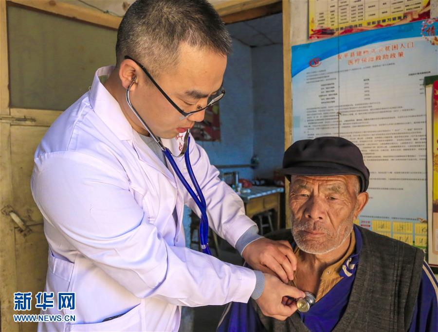 10月12日,安平县马店镇卫生院签约医生在刘吉口村贫困户家中为其检查身体。 新华社记者 李晓果摄