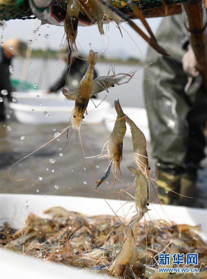 目前正值沼虾的收获季节,浙江省湖州市吴兴区八里店镇丰盛湾水产养殖基地的工人们忙碌于虾塘,捕获、分拣,供应市场。