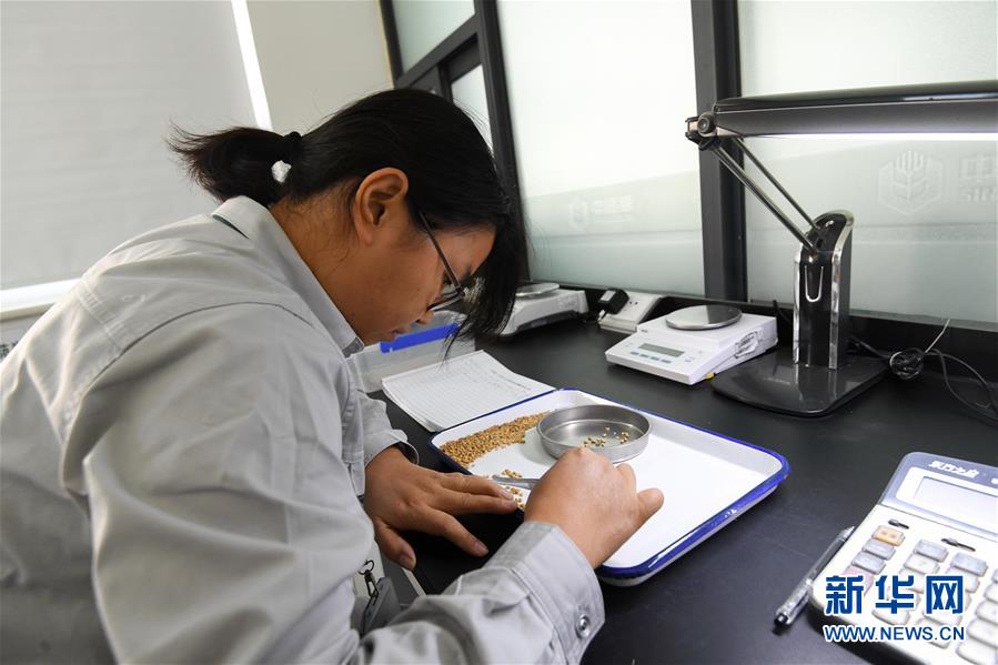 在中央储备粮新港直属库,一名质检员在进行质检(10月11日摄)。 新华社记者 陈晔华 摄