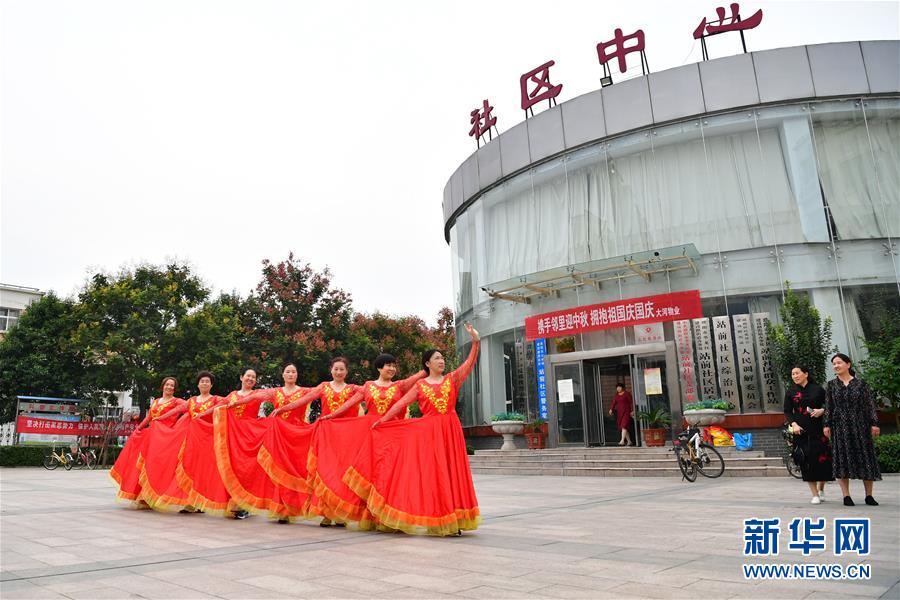 在河南省濮阳市华龙区建设路街道办事处站前社区,社区居民为迎接国庆排练节目。精细化、网格化管理,让这里的居民安居乐业(9月27日摄)。新华社记者 冯大鹏 摄