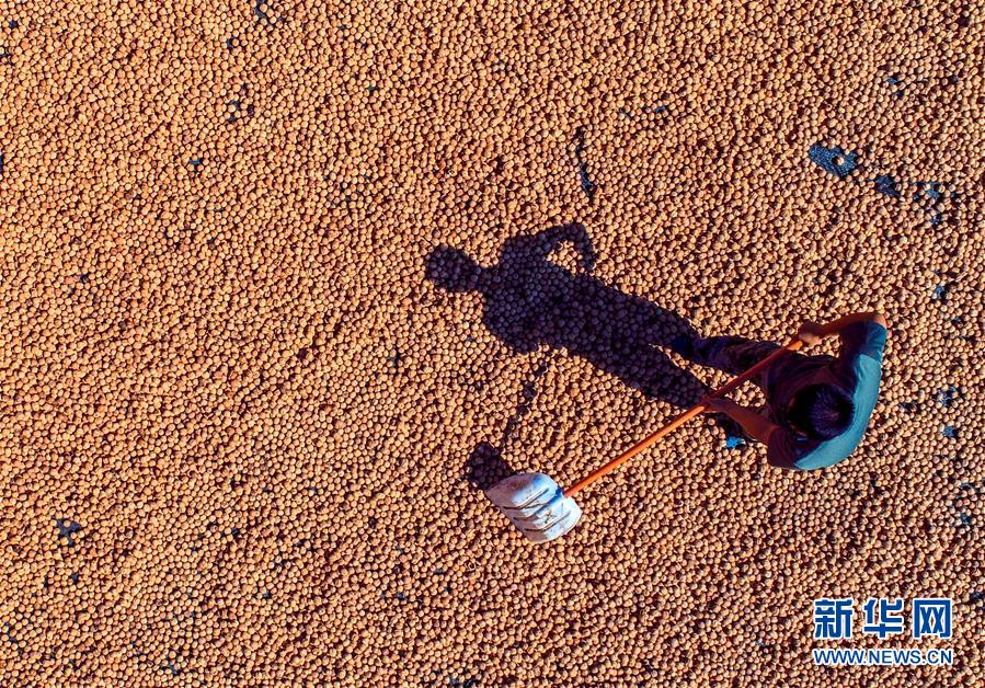 河北涉县井店镇台北村的村民在晾晒核桃(9月8日摄)。 金秋的阳光洒满河谷,河北涉县山核桃迎来收获季。村民们房前屋后晒核桃,蹬着三轮卖核桃,厂房忙着加工核桃,处处洋溢着丰收的味道。 涉县是中国核桃之乡,全国重点核桃产区县之一,全县核桃种植面积45万亩,相关专业社130多家,核桃深加工企业12家,并形成了“三珍”“女娲”“宜维尔”等品牌,建成了6个核桃万亩园、50多个核桃专业村。 新华社记者 王晓 摄
