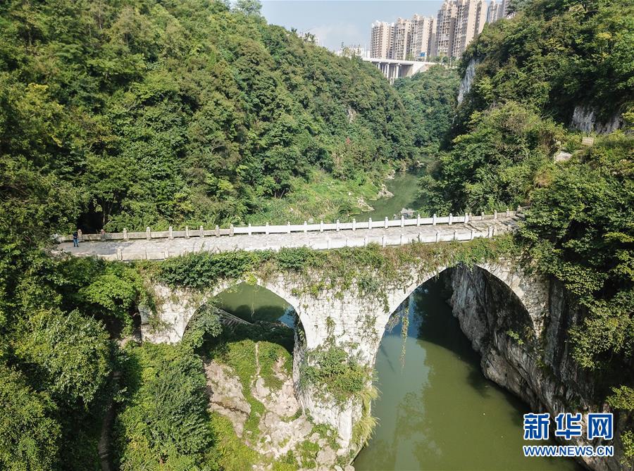 位于贵州省福泉市,修建于明代的葛镜桥被桥梁专家茅以升誉为“西南桥梁之冠”(8月21日无人机拍摄)。新华社记者 陶亮 摄