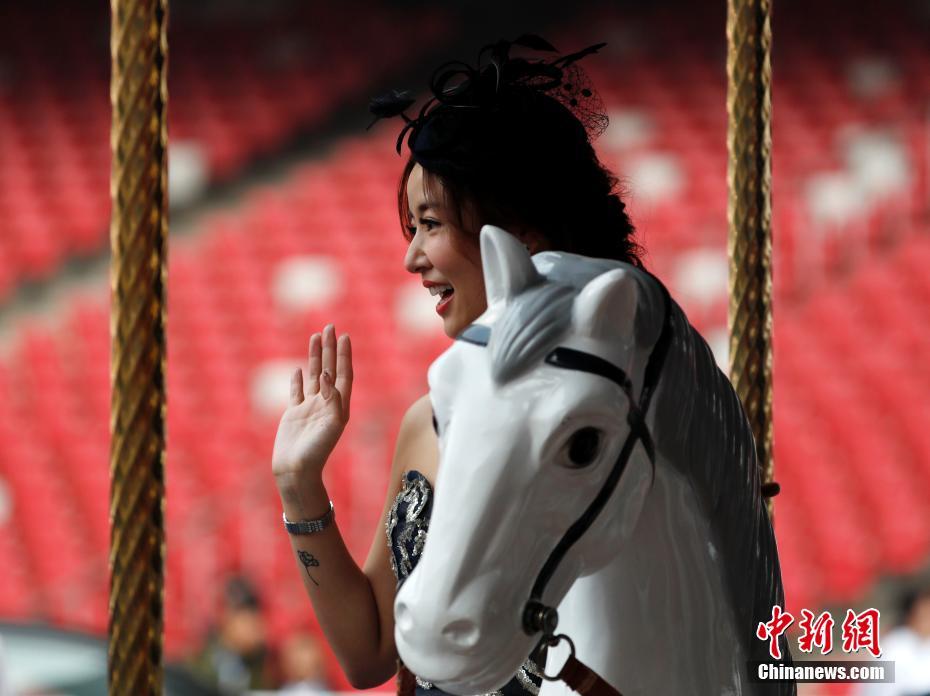 10月14日,北京国际马术大师赛在北京国家体育场落幕。10月12日至10月14日三天赛程里,国内外共计251对人马组合在六大级别赛事中争夺233.29万元人民币的总奖金。赛事由中国马术协会、国家体育场(鸟巢)主办。图为林心如现身北京国家体育场,助阵国际马术大师赛。中新社记者 刘关关 摄
