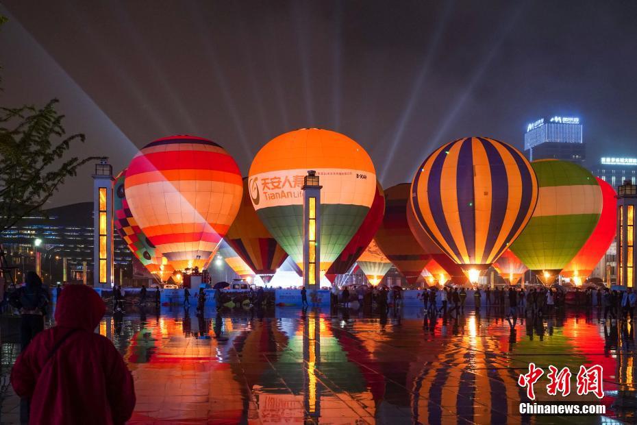 10月14日晚,中国热气球表演赛暨飞行体验活动点火仪式在贵州省兴义市桔山广场举行。图为点火仪式现场。中新社记者 贺俊怡 摄