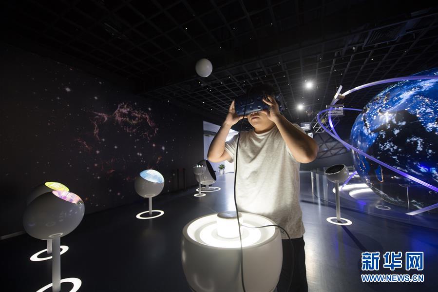 一名参观者在德清地理信息科技馆通过VR设备观看地面测绘影像(9月17日摄)。 新华社记者翁忻旸摄