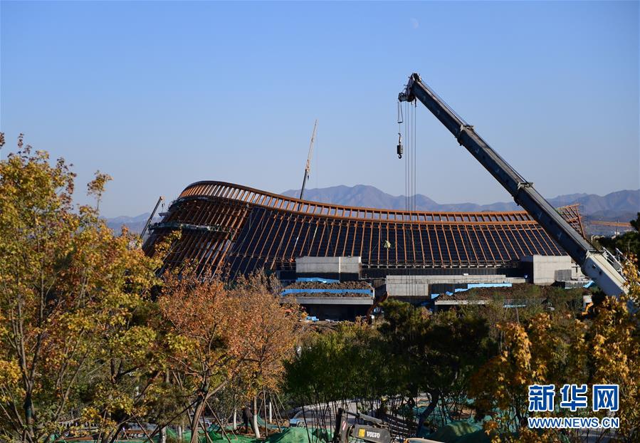 10月18日拍摄的建设中的北京世园会中国馆。新华社记者 张晨霖 摄