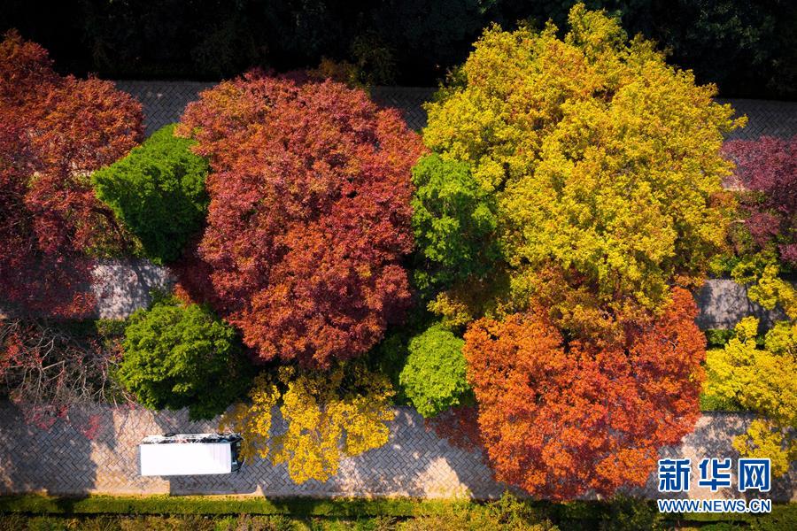 这是10月18日无人机拍摄的江苏南京明孝陵景区秋景。 新华社发(苏阳 摄)