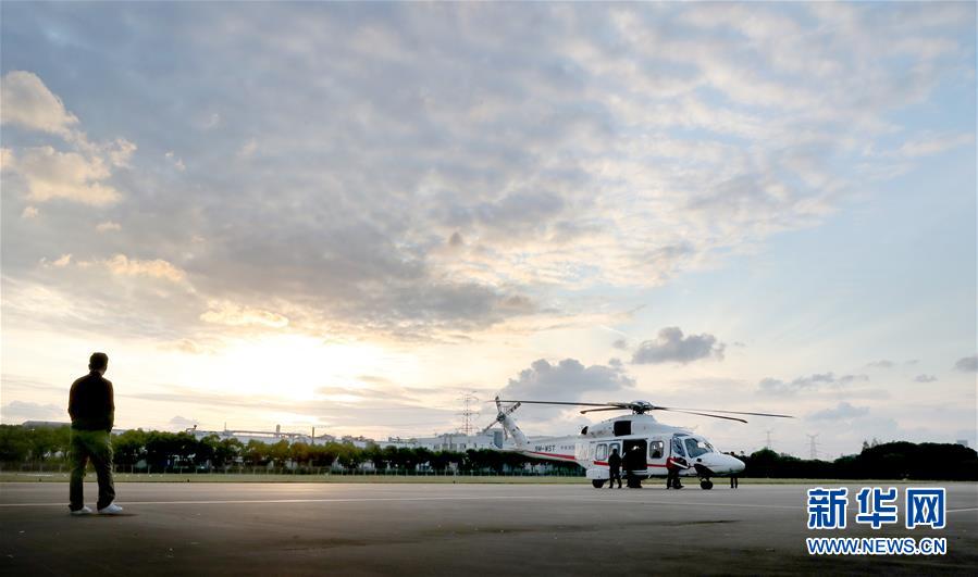 10月20日,意大利莱奥纳多直升机公司AW189直升机降落在上海高东直升机场。 新华社记者 方喆 摄