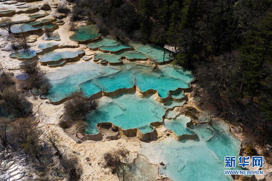 俯瞰黄龙沟争艳池一角(10月19日无人拍机摄)。新华社记者 江宏景摄