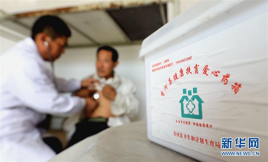 10月21日,在香河县安头屯镇东太平庄村,家庭医生为贫困户复查身体。 新华社记者王晓摄
