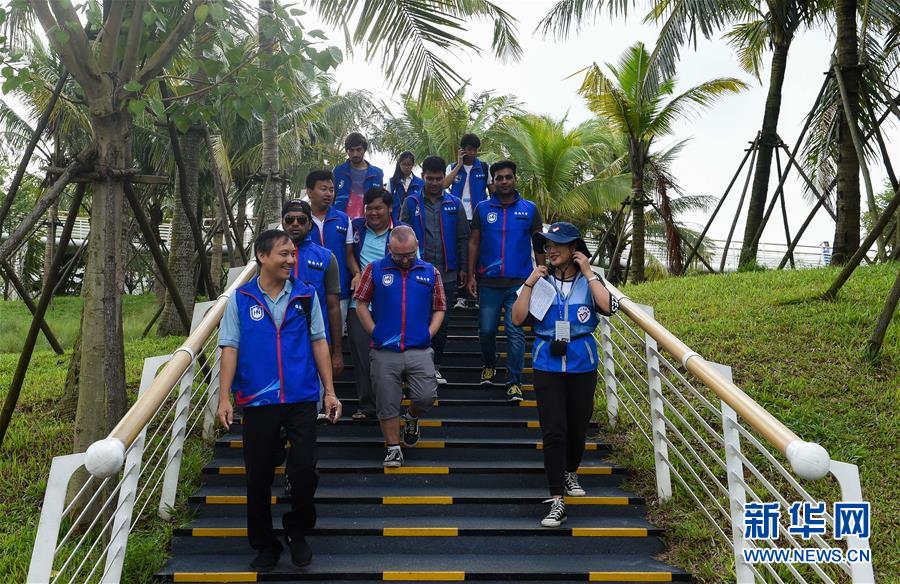 10月21日,参加湿地保护志愿服务讲解员培训的留学生志愿者边参观美舍河凤翔湿地公园边听中国志愿者的讲解。 新华社记者杨冠宇摄