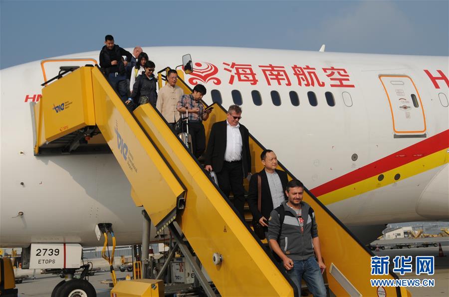 10月20日,海南航空控股股份有限公司(简称“海南航空”)一架波音787梦想客机抵达奥地利维也纳国际机场后,乘客走下飞机。 新华社记者刘向摄