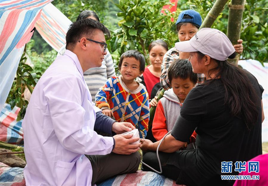 10月22日,广东中山大学附属第五医院援藏林芝市人民医院医生杨中萌(左)在墨脱县墨脱镇米日村临时救灾安置点为群众进行健康巡诊。 当日,由西藏林芝市卫计委牵头发起,由林芝市人民医院、林芝市疾控中心医卫工作者组成的医疗卫生保障组赶赴墨脱县临时救灾安置点开展健康巡诊、传染病监测预警、环境卫生消杀等活动。 17日,雅鲁藏布江西藏米林县派镇加拉村附近突发山体滑坡,堵塞河道,形成堰塞湖。地处雅鲁藏布江堰塞体下游的墨脱县立即开展群众转移工作。目前,安置点社会生活井然有序。 新华社记者 刘东君 摄