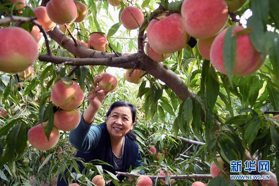 10月22日,山东省阳谷县侨润街道前杨村农民在果园采摘桃子。 霜降将至,各地农民抢抓农时忙收获,一派繁忙的丰收景象。 新华社发