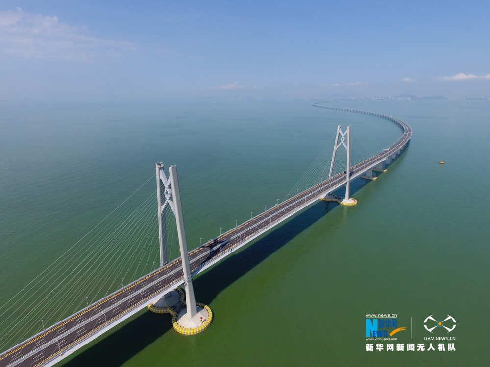 图为新华网无人机队航拍港珠澳大桥。新华网 黄璐璐 摄