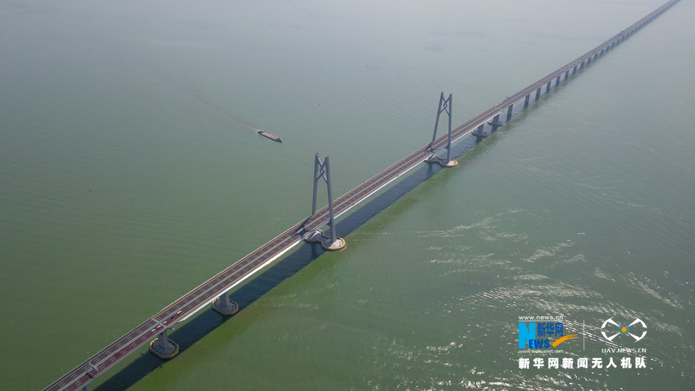 图为新华网无人机队航拍港珠澳大桥。新华网 黄璐璐 摄