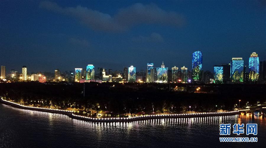 这是海口市万绿园夜景(10月22日无人机拍摄)。 新华社记者 杨冠宇 摄
