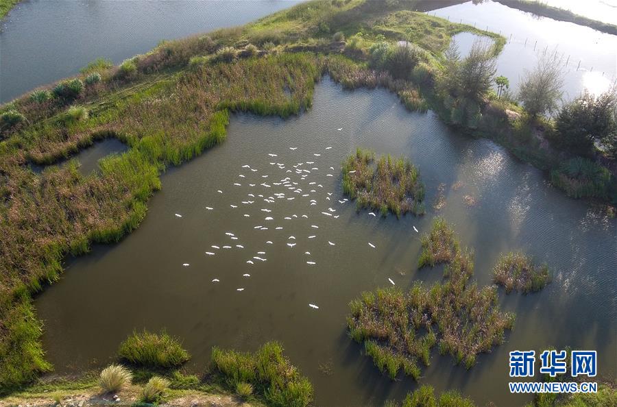 一群白鹭在海口市五源河湿地公园内飞行(10月22日无人机拍摄)。 新华社记者 杨冠宇 摄