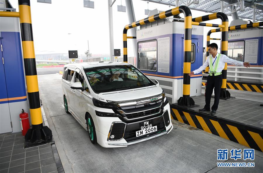 10月24日,首辆从珠海开往香港的私家车辆通过港珠澳大桥收费站。当日,港珠澳大桥正式通车。 新华社记者梁旭摄