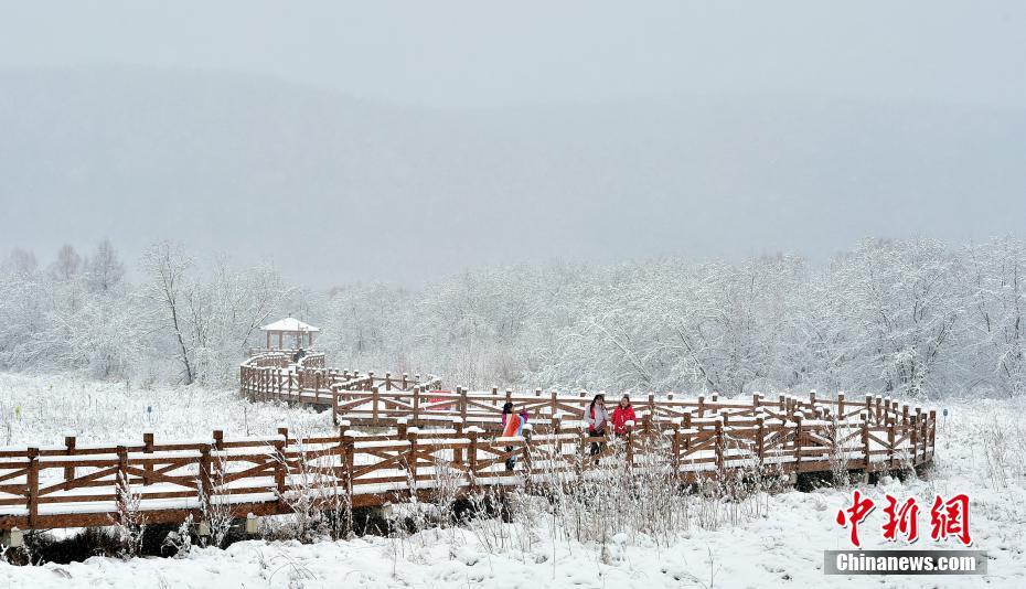 10月26日,游客在雪中嬉戏。25日深夜至26日,内蒙古自治区呼伦贝尔境内迎来一场大雪,正值深秋时节,这场大雪的到来将当地森林、草原、湖泊构成一幅幅美丽的“水墨画”,美不胜收。据了解,呼伦贝尔地处内蒙古东北部,作为中国最寒冷的地方之一,其冰雪期长达7个多月。中新社记者 侯玉鹏 摄