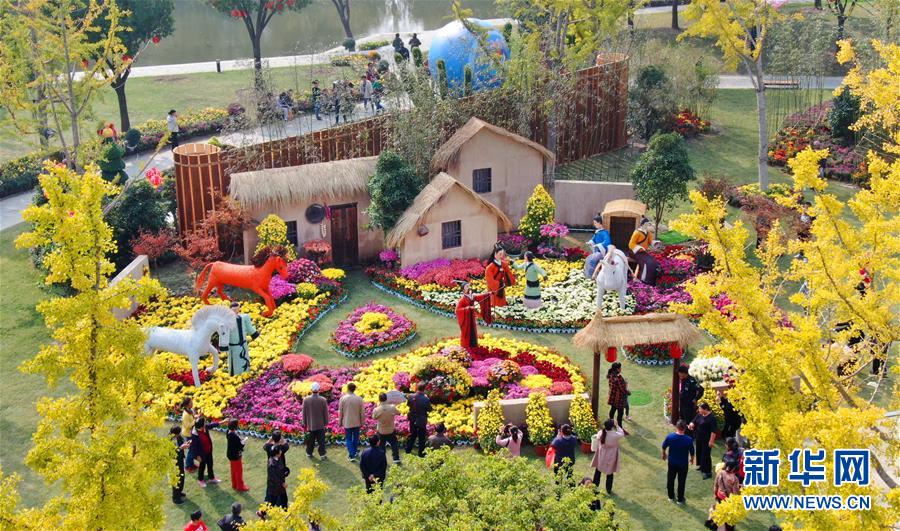 市民在菊展现场赏花游览(10月26日无人机拍摄)。