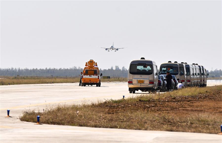 10月27日,C919大型客机第二架机即将降落在南昌瑶湖机场。 新华社记者 胡晨欢摄