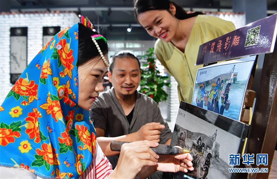 10月27日,福建省雕刻艺术大师张镇雄(中)在指导公司员工雕刻传统影雕作品。 新华社记者 魏培全 摄